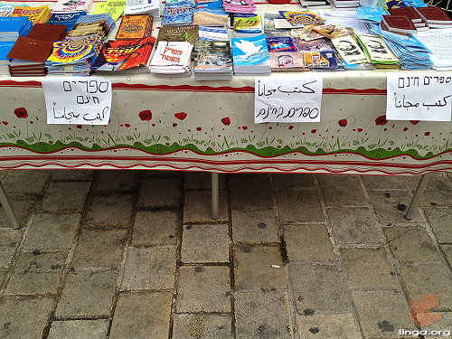 This year, an evangelistic outreach was held that joined several Arab Christian and Messianic ministries along with foreign believers from different countries. Together, the outreach participants organized a temporary headquarters outside the Baptist bookstore of Acre and distributed Christian literature to the city's visitors.