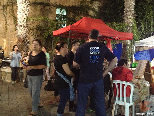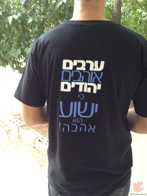 Participants shared Christian material in several languages and also distributed DVDs. Arab believers wore shirts reading "Arabs love Jews because Jesus is Love," which attracted many Jews and initiated great opportunities for sharing the gospel. The joint effort between Arabs, Jews and foreign participants also drew interest and provided opportunities to testify about Christ and the beauty of "one body of believers."