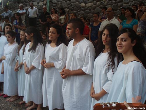 The young men and women descended to the water, one by one, accompanied by Pastor Hani alongside singing hymns with the crowd, as they declared in their baptism burying the old man in their lives and the beginning of a journey in obedience with the Lord Jesus. And when they came out of the water, pastor Hani accompanied by leaders of the church extended hands in prayer for them.