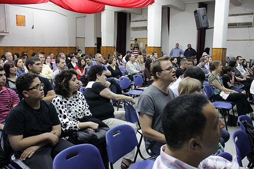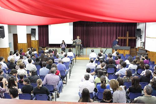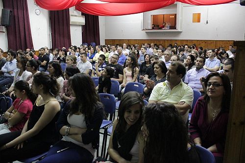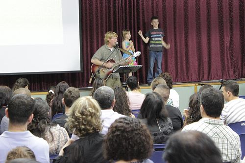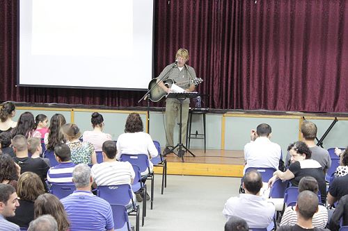 In response to an invitation by the local Baptist church in Nazareth, the hall of the Baptist school was full of people on Friday 26th April 2013. People came from all around the Galilee area to attend a wonderful evening led by the American singer Matthew Creamer.