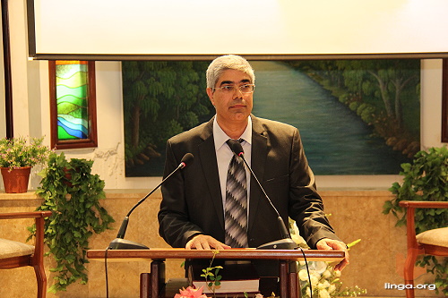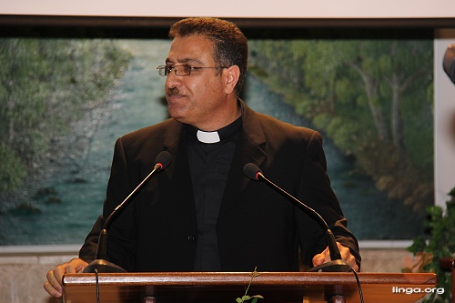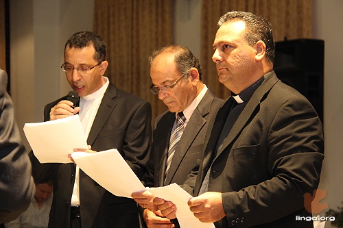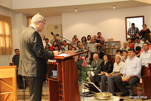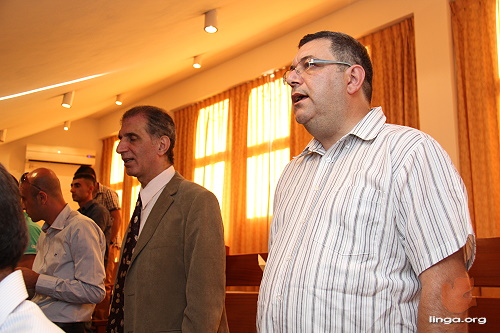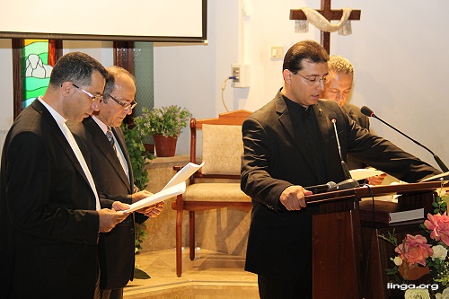 The ceremony began with a word of prayer from Fouad Sahknini, pastor of the Baptist church hosting the event in Nazareth. Pastor Khaled Dalleh, host of the event and pastor of the Evangelical Baptist Church in Kafer Yasif, welcomed the attendees. He especially welcomed those who came from the Baptist church in Shefamer, where the newly ordained Pastor Hayek will serve.