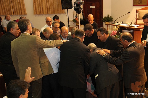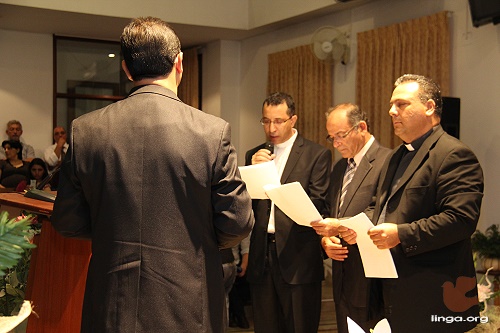 Mrs. Zeina Na’um sang “In this life, it pleases me to serve the Lord.” Mr. Mamdouh Gadallah and Hani Bellan, pastor of the Baptist church in Cana of Galilee, read from Ephesians 4:1-13 and Timothy 3: 1-7.