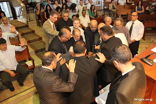 The Association of Baptist Churches (ABC) in Israel and the Evangelical Baptist Church in Shefamer held a ceremony on July 5, 2013 at the Baptist Church in Nazareth to ordain Nader Hayek as a pastor. About 300 people from various evangelical churches and many of Pastor Hayek's relatives attended.