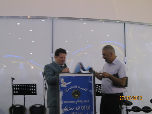The Nazarene church in Nazareth, whose pastor is Nizar Touma, held a special evening of revival on Saturday 27 July 2013 with the presence of Rev. Dr. Nabil As’ad in David’s hall in Upper Nazareth. Many people from Nazareth attended the meeting as well as from other places in Galilee.