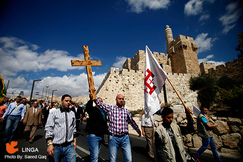 The association for developing the Christian quarter in Jerusalem in collaboration with other Christian denominations organized a demonstration for denouncing the recent attacks on Churches and Christian cemeteries by fanatic Jews. The most recent attack took place last week.