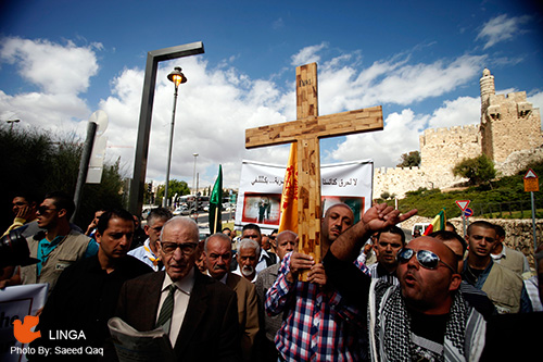 The demonstrators on their way to Mount Zion, photo by Saeed Alqaq