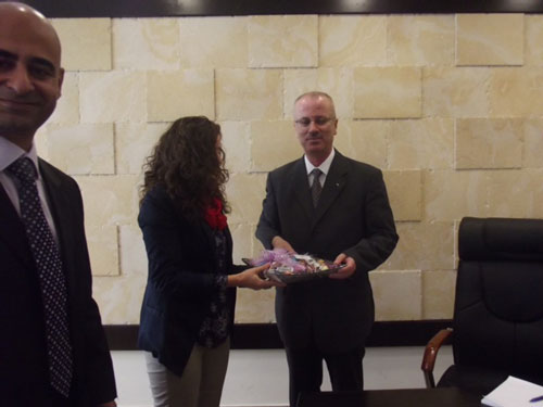 Nashat Fellimon, President of the Palestinian Bible Society shared a brief presentation on the work of the Bible Society, goals, aspirations, church ministry, and development of relief work that’s being done in all areas of the West Bank and Gaza. Then Mr. Fellimon presented the Prime Minister a copy of the Bible and gave his congratulations on the occasion of Eid al-Adha, as he invited him to the opening of bible society new office in Tol Karem.