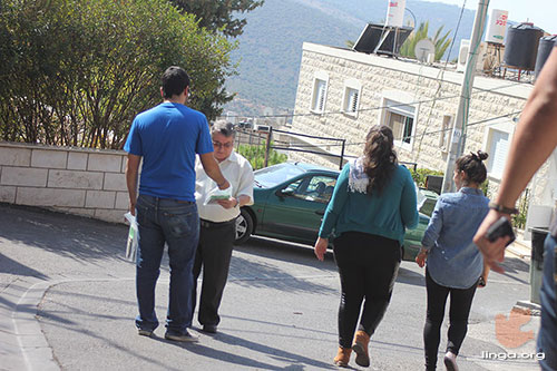 The ambassador’s ministry members met with members of the Ramah Church evangelical Baptist at the Church Center to pray and ask God's blessing over the outreach to be held, and then divided into several groups, prayer group in the Center and other groups heading out to the streets and neighborhoods and alleys that is populated with Christians, Druze and Muslims.