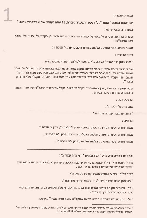 The threatening letter in Hebrew is below.