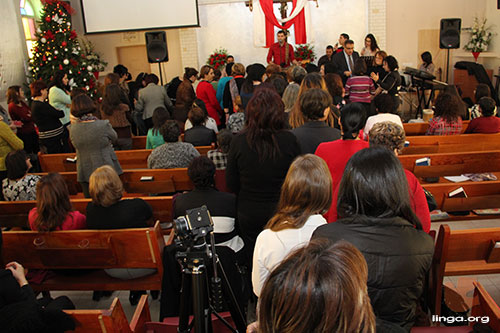 Prayer was held after the sermon, and those who wanted to be prayed for were asked to approach the podium. During this time the worship band continued with their performance, and those who were ready for lunch were welcomed in the lobby with refreshments, pastries and an array of salads and casseroles from which they could choose. There was also a “Secret Santa” gift exchange for all the ladies who brought gifts. Some friendly chatter capped the event outside on the warm sunny December afternoon, and in general the event was met with great success and praise by those who attended.