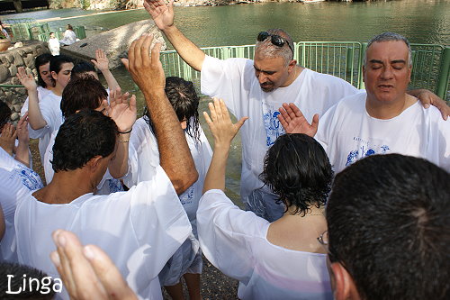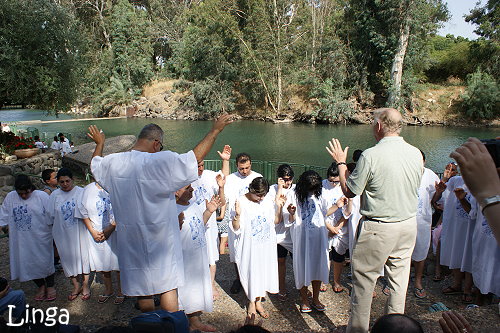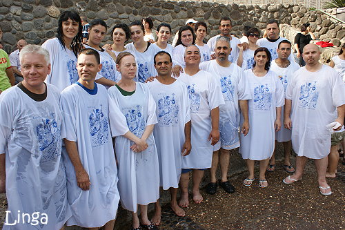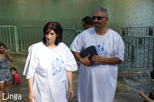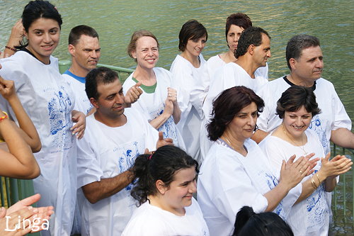 Following the morning service on Sunday, June 13th, the Nazarene Church in Nazareth held a baptism service for 15 members at the Yardenit site on the Jordan River. They gathered for lunch at a nearby park before performing the service.