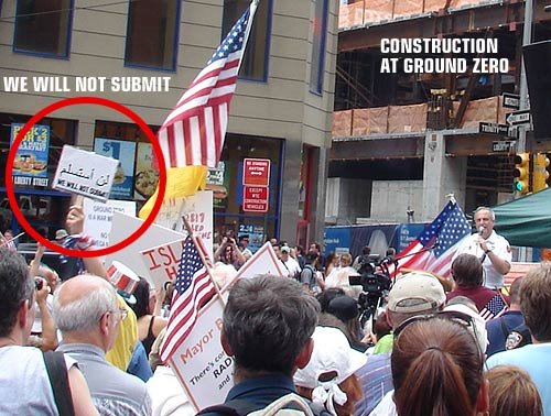 The protest, organized by Stop Islamization of America (SIOA), kicked off at noon and rallied support behind efforts to stop construction of the Cordoba House – a 15-story facility that project leaders claim will promote tolerance and serve as a platform for people of all backgrounds to come together.